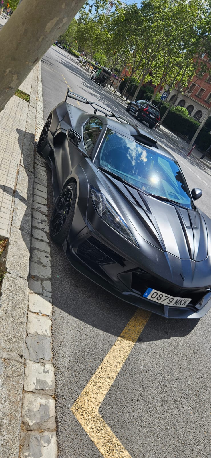 Fajny samochód ale brakuje mu klamek i świateł przednich, które są w czerwonym kolorze.